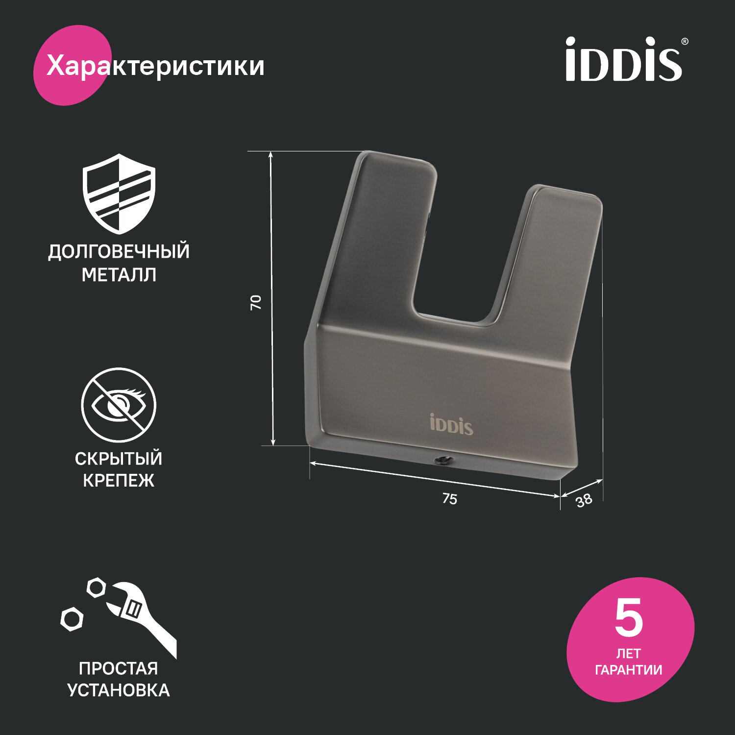 Крючок для ванной Iddis Slide двойной на шуруп металл графит (SLIGM20i41) информация: