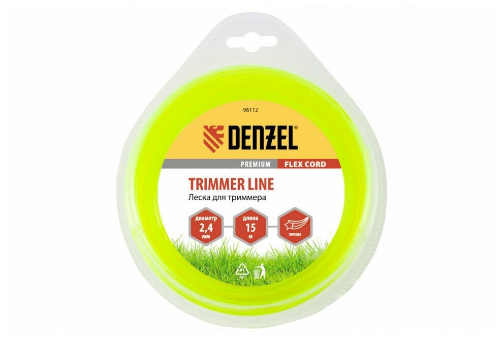 DENZEL 96112 Леска для триммера, звезда 2,4 мм x15 м, блистер Flexcord Denzel 96112 1шт