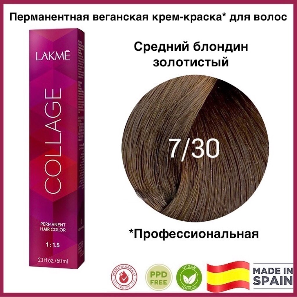 LAKMÉ, COLLAGE, Перманентная крем-краска для волос №7/12, Средний блондин пепельно-фиолетовый, 60мл