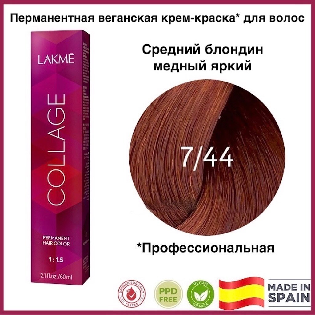 Lakme перманентная крем-краска Collage, 7/44 средний блондин медный яркий, 60 мл информация: