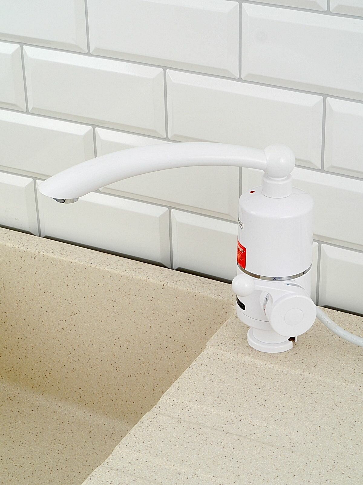 Смеситель на раковину Potato P0057 с проточным нагревом, белый, крепление гайка