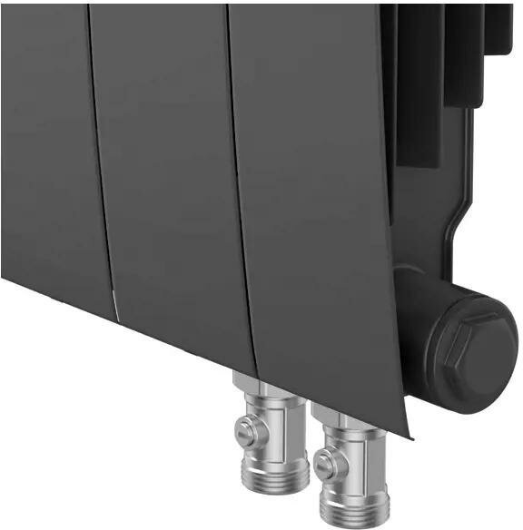 БиМеталлический радиатор Royal Thermo Biliner Noir Sable 500 V \ 08 секций \ с нижним правым подключением, термовентиль тип Click