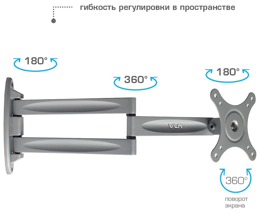Кронштейн VLK TRENTO-15 silver, для LED/LCD TV 10-32, max 15 кг, настенный, 5 ст свободы, max VESA 100x100 мм