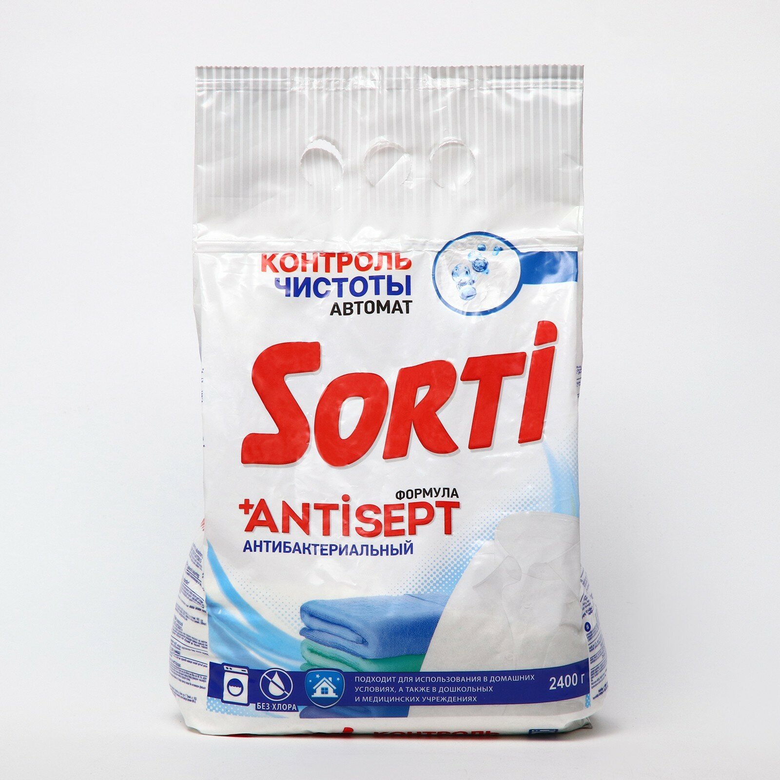 Порошок для машинной стирки Sorti «Контроль чистоты», антибактериальный, 2.4кг