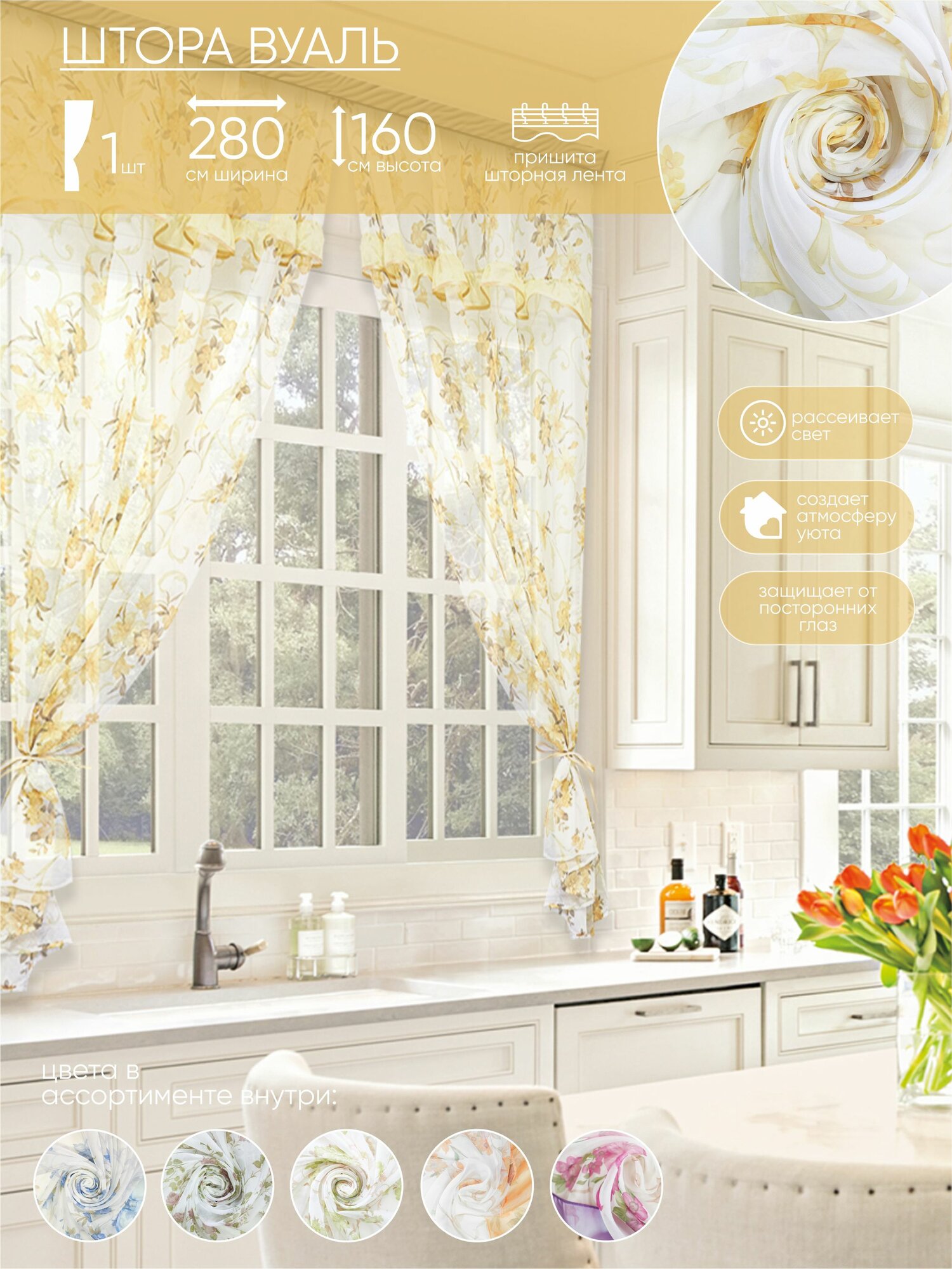 Комплект штор Witerra для кухни Цветы 280*160 желтый - 1шт