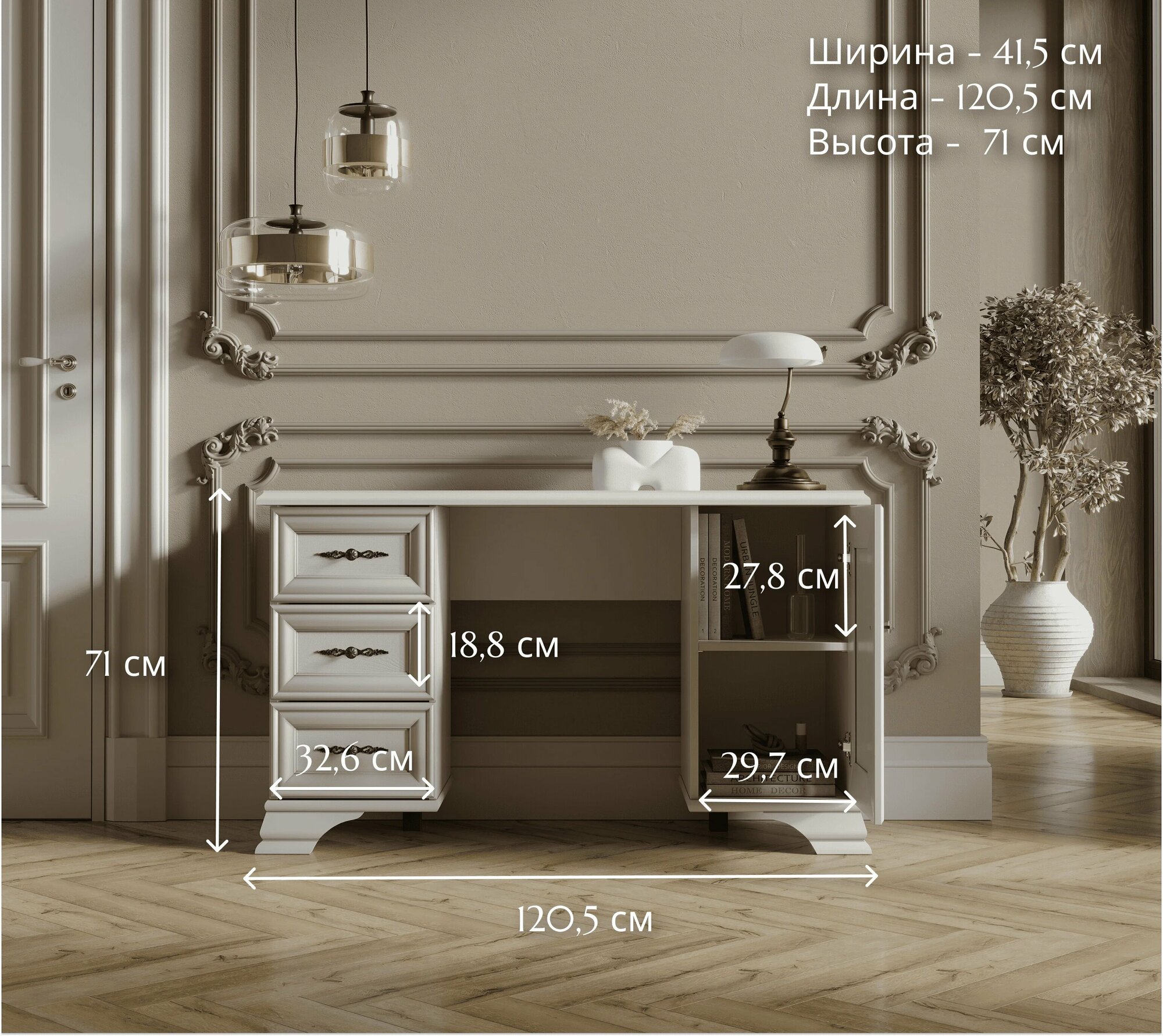 БРВ-Мебель Стол туалетный с двумя тумбами шириной 120 см и глубиной 42 см Кентаки TOL белый