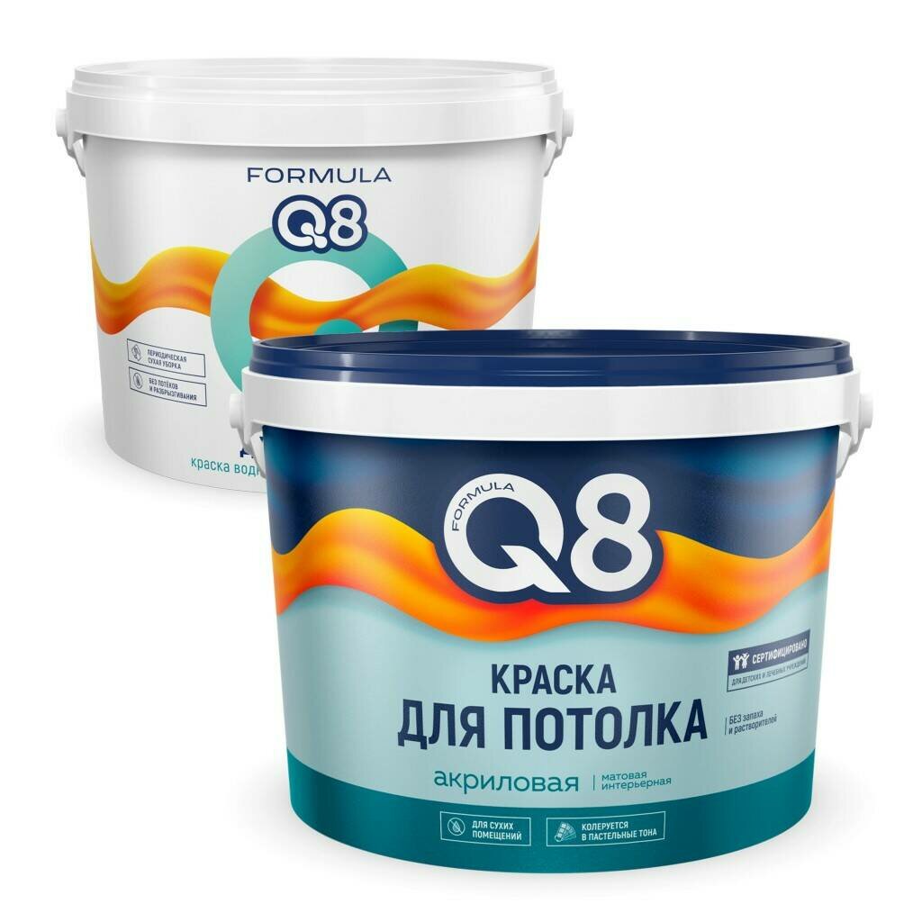 Краска для потолка водно-дисперсионная Formula Q8, акриловая, матовая, белая, 1,5 кг
