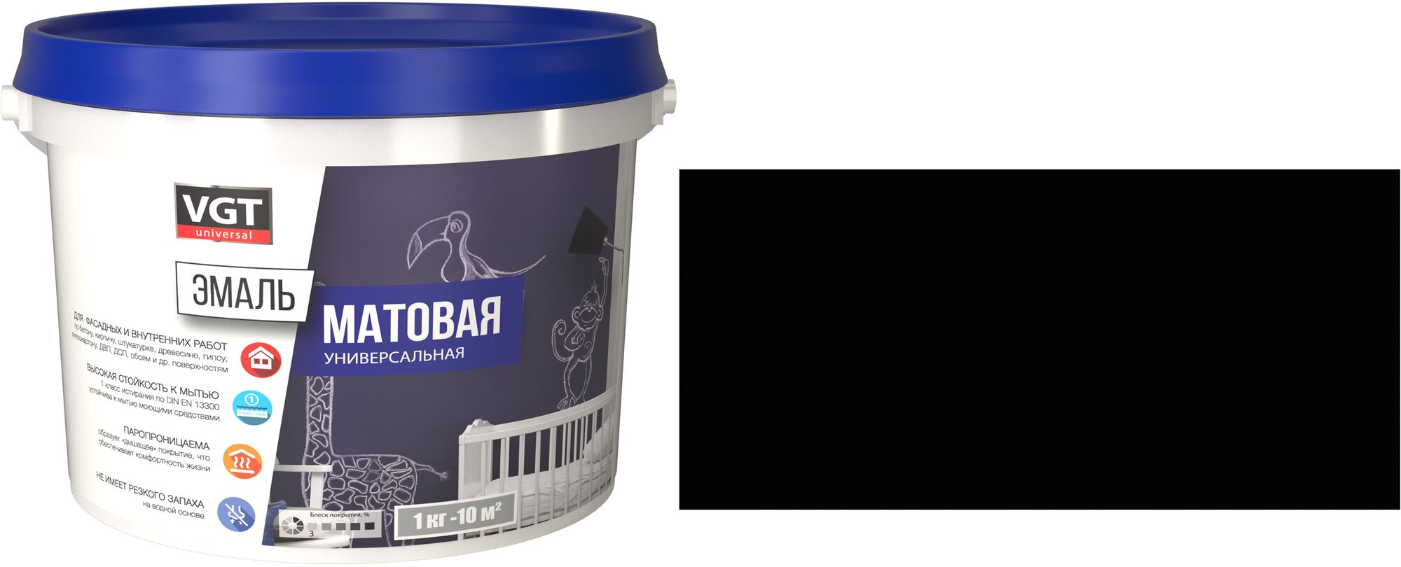 Эмаль акриловая VGT, эмаль матовая, эмаль универсальная, черная, 2.5 кг. информация: