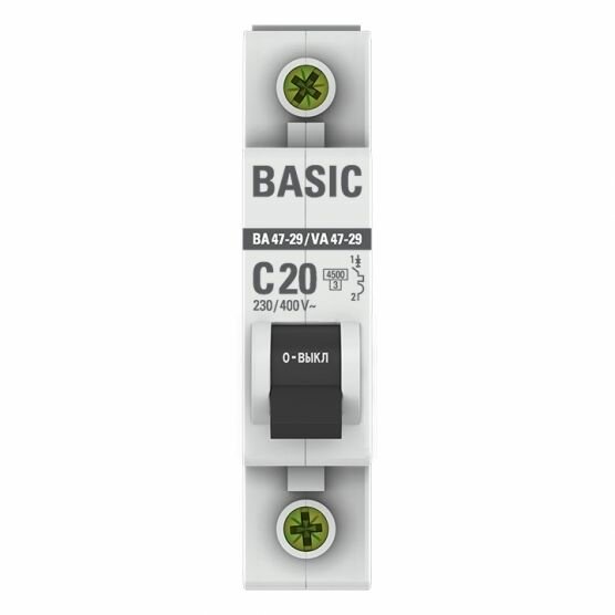 Выключатель автоматический однополюсный ВА 47-29 20А C 4,5кА Basic. mcb4729-1-20C EKF информация: