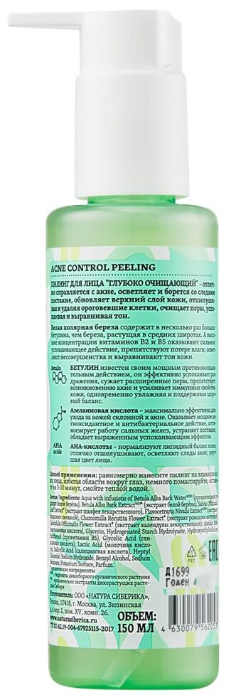Natura Siberica пилинг Bereza Acne control Peeling глубоко очищающий 150 мл