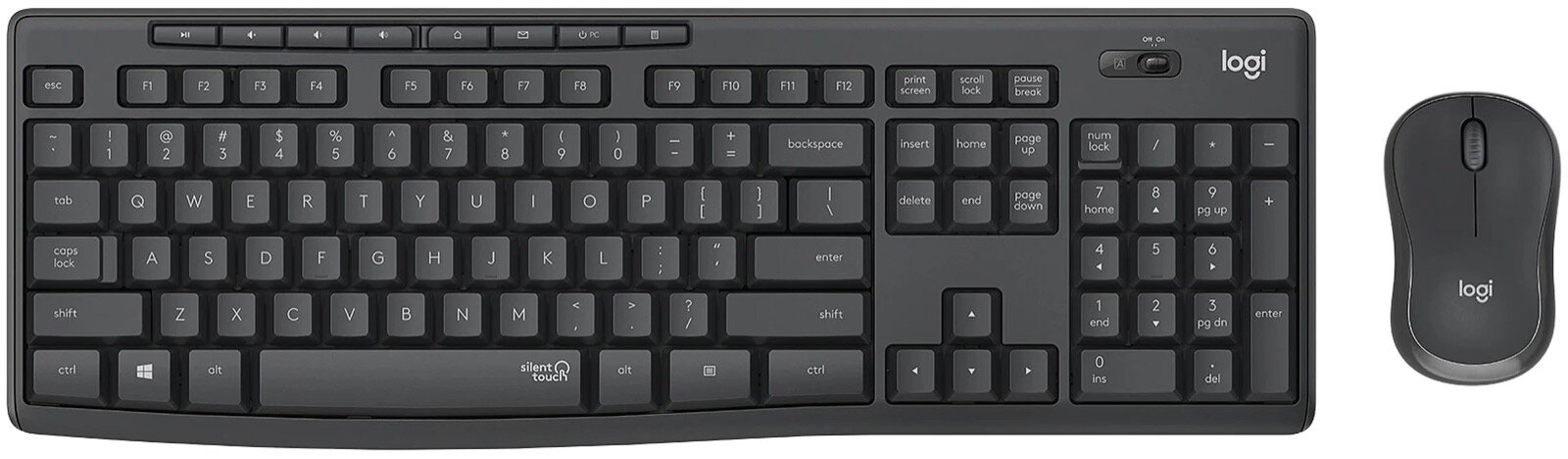 Комплект клавиатура + мышь Logitech Silent Wireless Combo MK295, графитовый, английская/русская