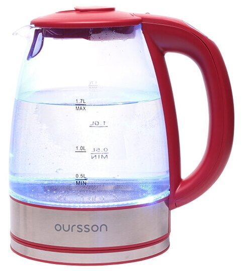Электрический чайник Oursson KE1716P/RD, красный, пластик, нержавеющая сталь, 1,7 л