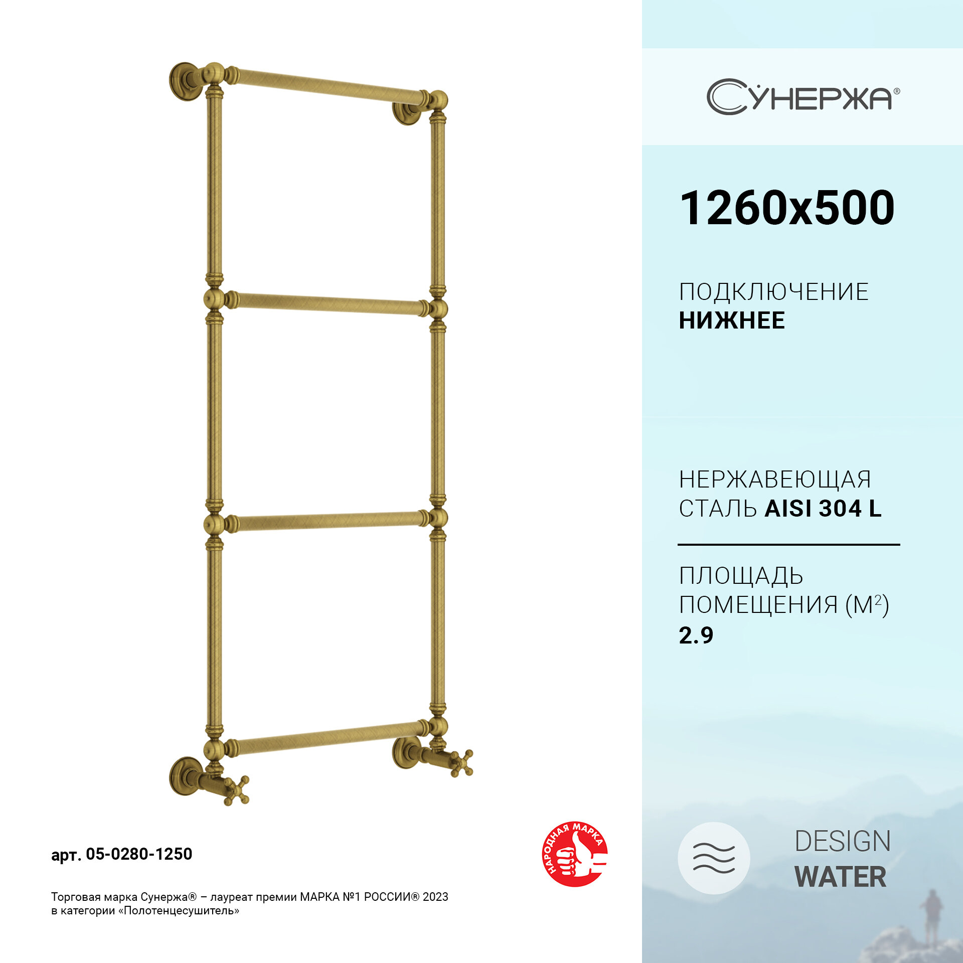 Полотенцесушитель водяной 1260x500 золотой Сунержа Ренессанс 1304 03-0280-1250 87 375 ₽
