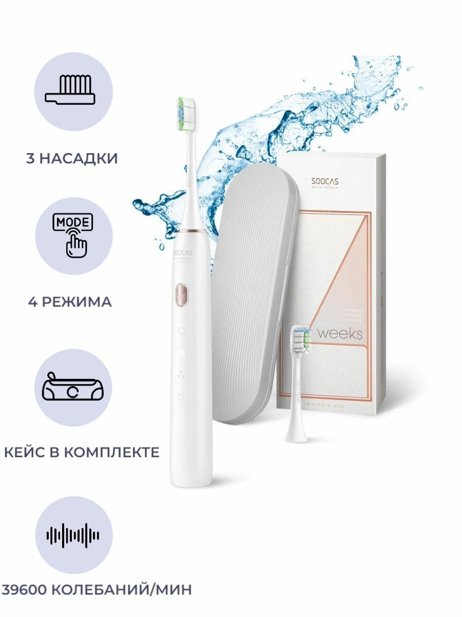 Электрическая зубная щетка Soocas X3U ультразвуковая, 3 насадки, 4 режима / щетка зубная электрическая взрослая, белая