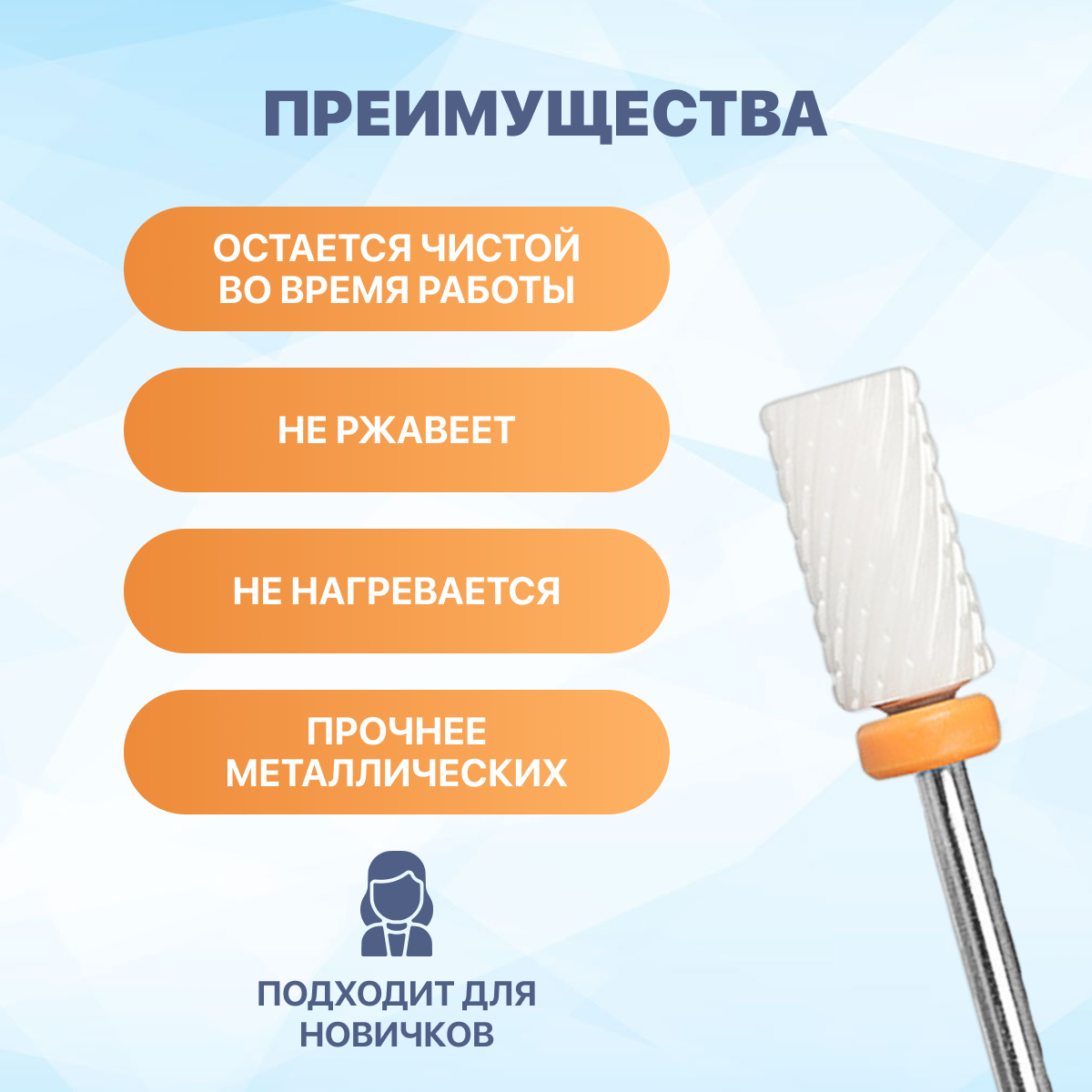 Отзывы на Фреза для маникюра и педикюра Irisk Professional керамическая Цилиндр, диаметр 6 мм, оранжевый, металл