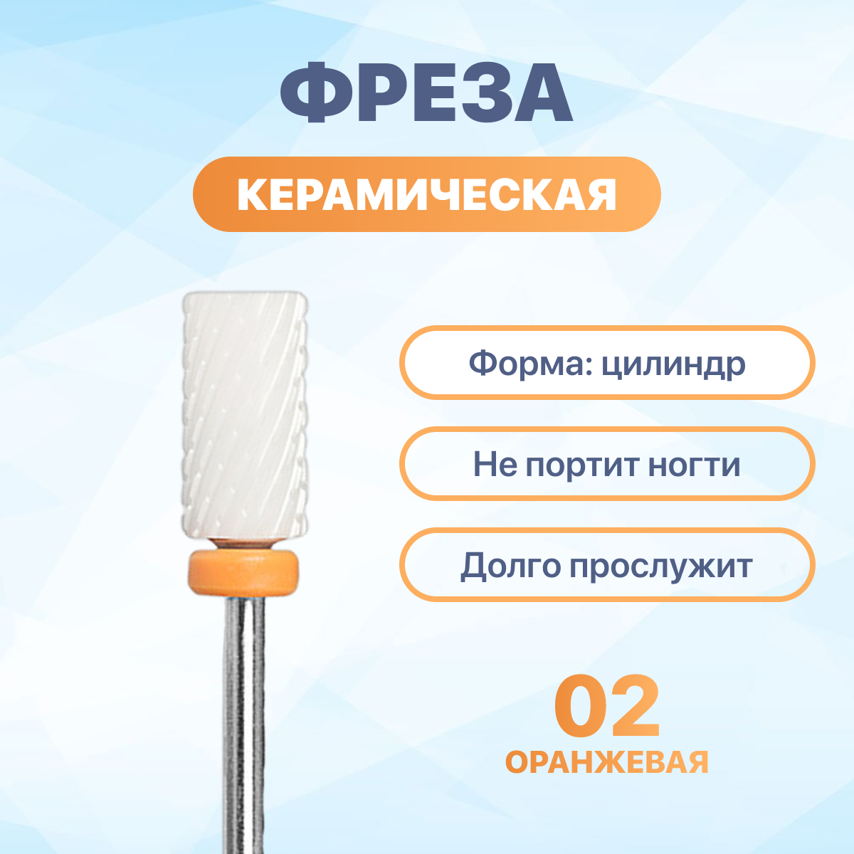 10 цен на Фреза для маникюра и педикюра Irisk Professional керамическая Цилиндр, диаметр 6 мм, оранжевый, металл