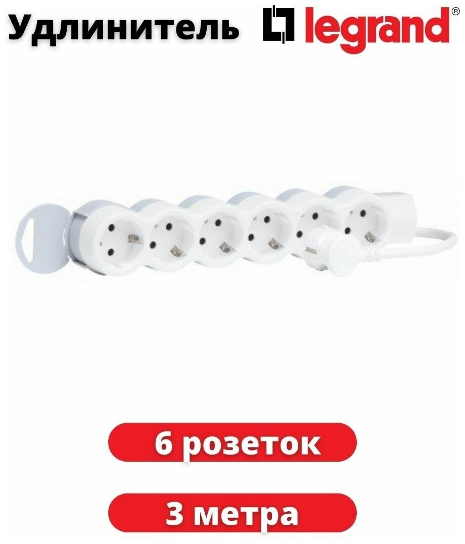 Удлинитель Legrand 6X2К+З 3м. 695017 695017 Legrand 3245066950174 2 615 ₽
