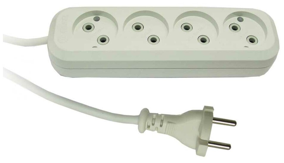 Удлинитель Makel 2 м метра длина розеток 4 гнезда без заземления б/з Макел 2х0,75 ПВС электрический сетевой бытовой 2200 вт 220в белый, арт. MGP142 408 ₽