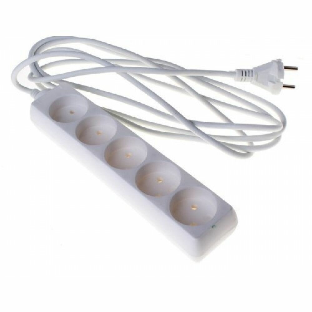 Удлинитель бытовой 5 гнезд, 1,5 метра, б/з, ПВС 2х0,75мм2, 10А, IP20