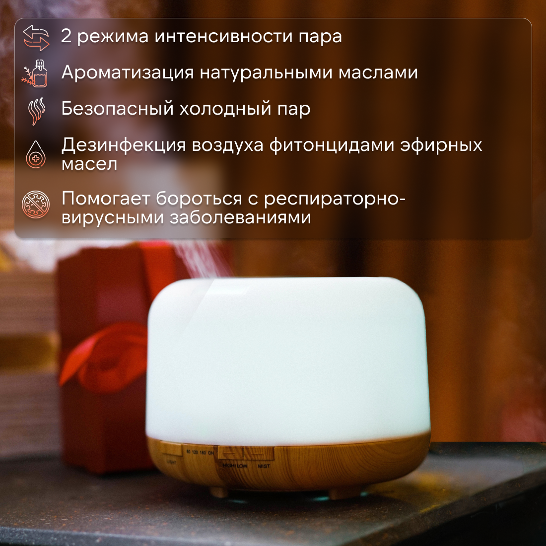 Увлажнитель воздуха SENS TINY MILK OAK с ароматизацией, 7 цветов подсветки информация: