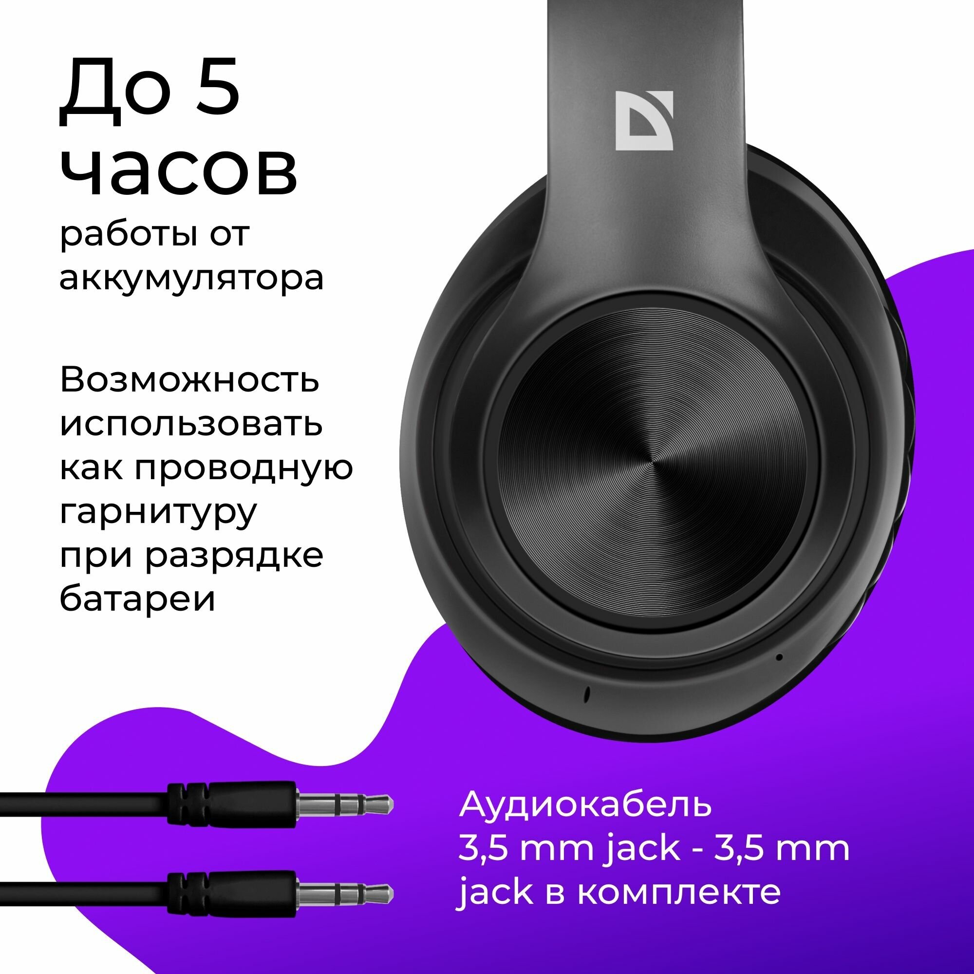 Беспроводные наушники Defender FreeMotion B552, черный информация: