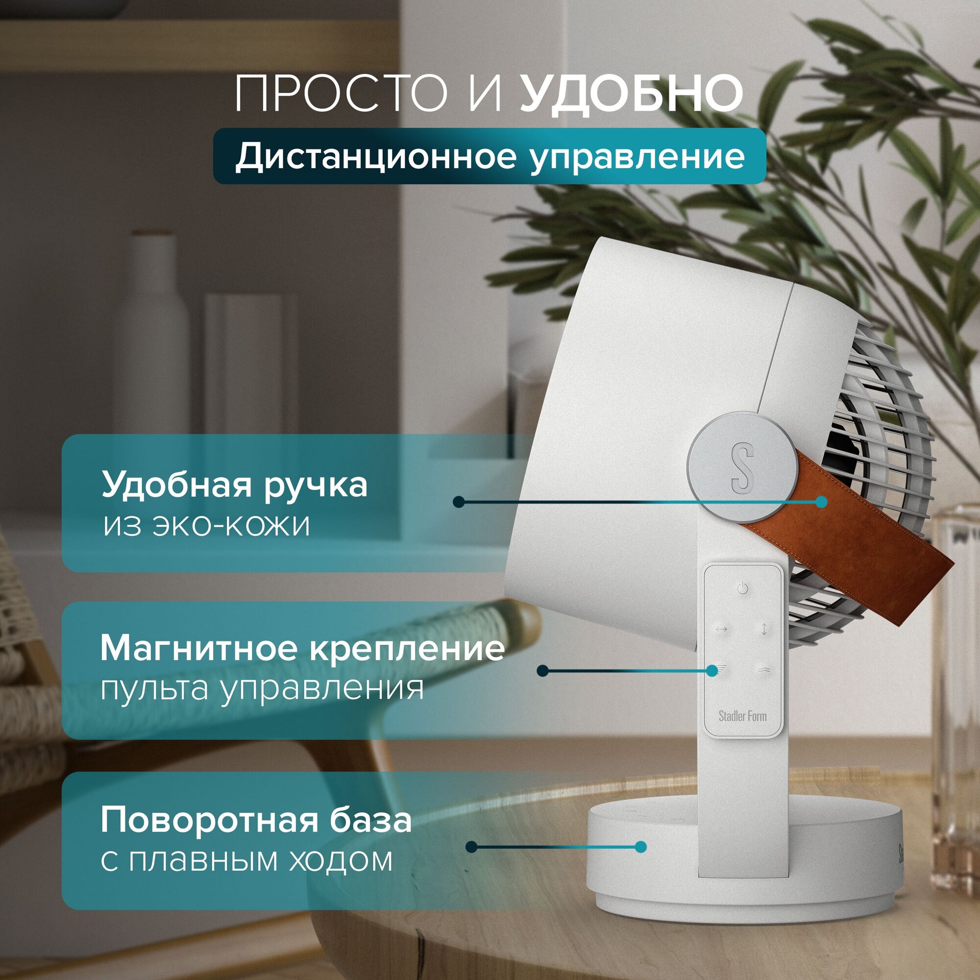 3D Вентилятор настольный и напольный с пультом ДУ и таймером, бытовой комнатный (для дома и офиса) Stadler Form Leo L-035 бесшумный, белый 14 990 ₽