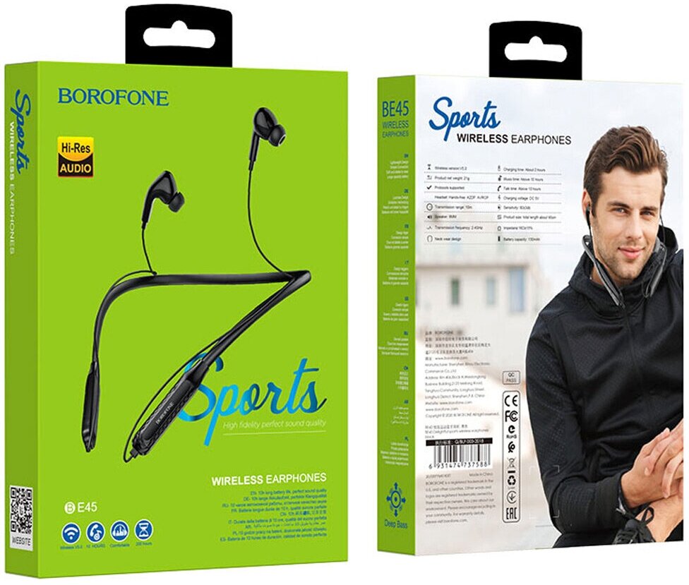 Беспроводные наушники для спорта BOROFONE BE45 Delightful, Bluetooth, черный