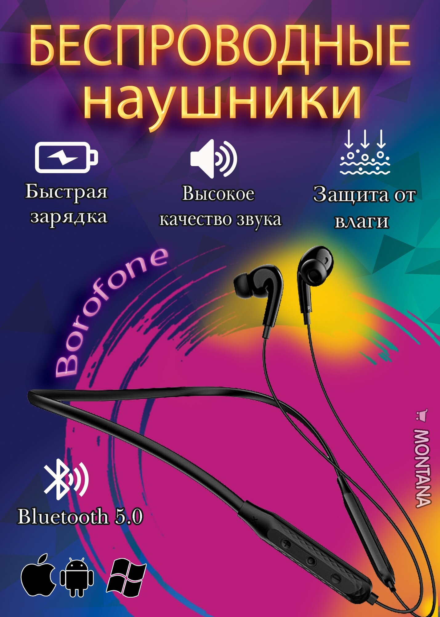 Беспроводные наушники Borofone BE45, mini jack 3.5 mm, black информация: