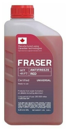 Антифриз Fraser универсальный красный -45, 0,25 Gal (0,94 L) FAUR-1 информация: