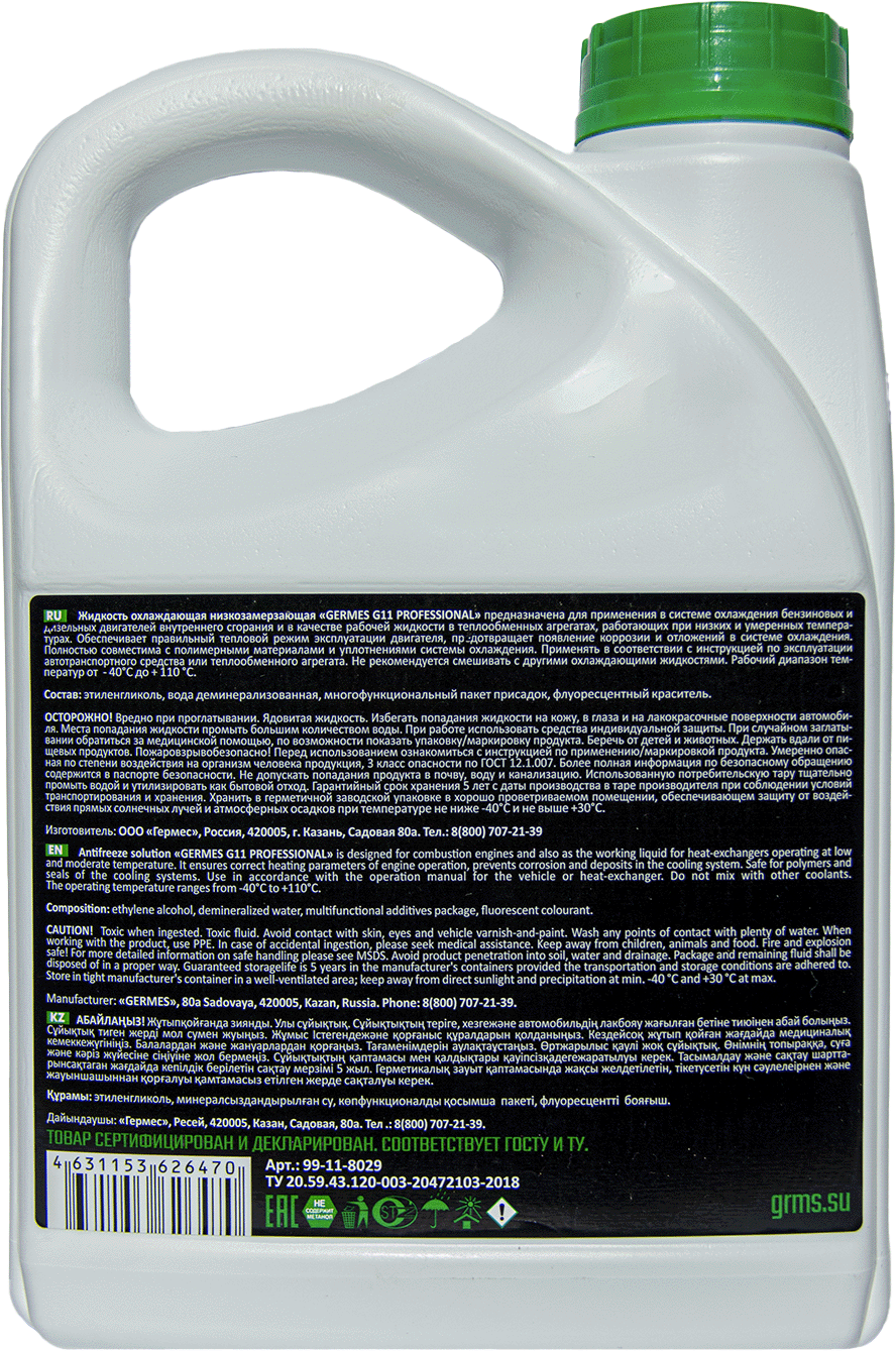 Антифриз Germes Professional G11 (зелёный) 3 кг информация: