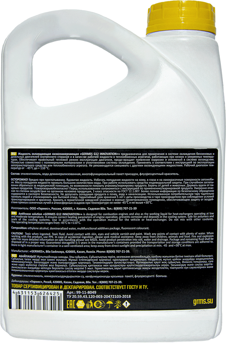 Антифриз Germes Innovation G12+(желтый)3кг информация: