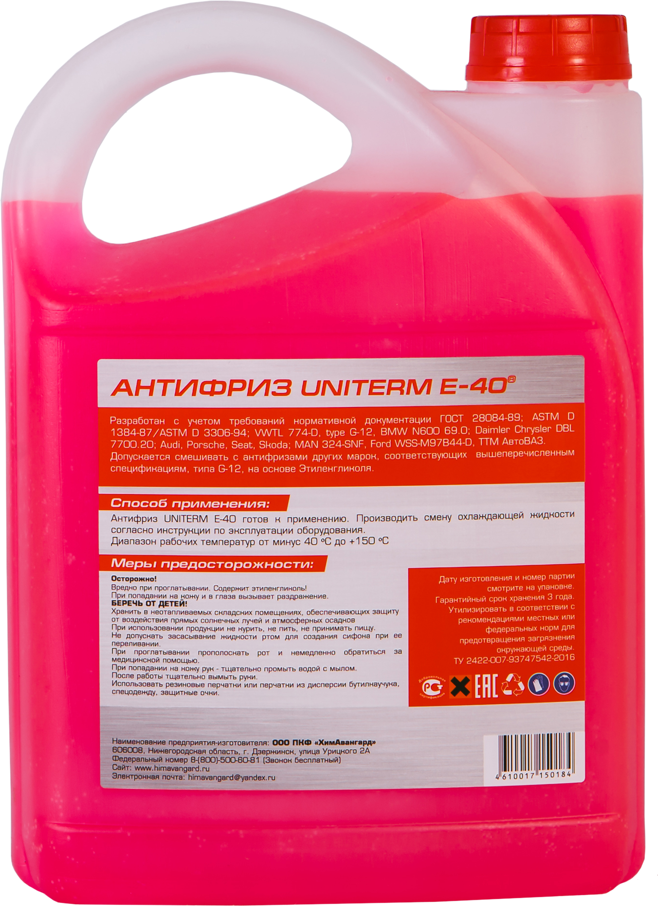 Антифриз UNITERM E-40 G-12 (красный, канистра 5кг) информация: