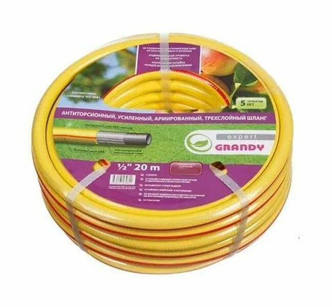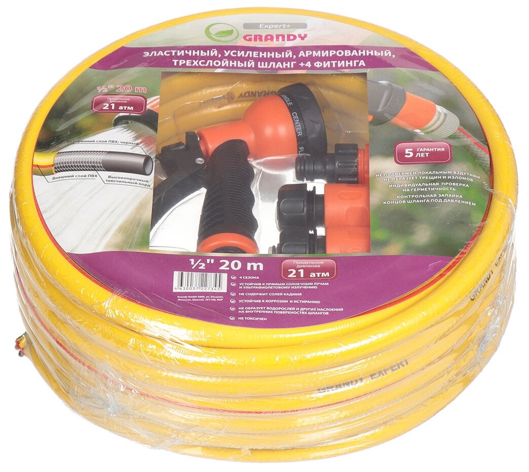 Grandy Шланг GRANDY EXPERT+ поливочный, 3/4 (20мм), 25м, 20атм, армир.3-х сл, антиторсионный+фитинги