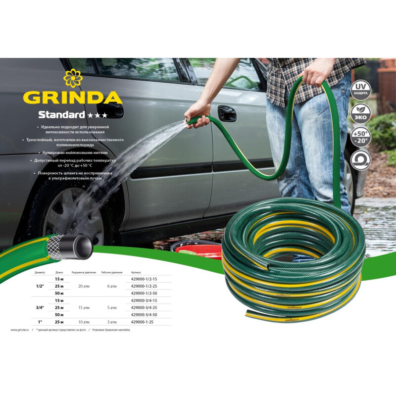 10 цен на Шланг поливочный GRINDA STANDARD 1/2 15 м 20 атм трехслойный армированный