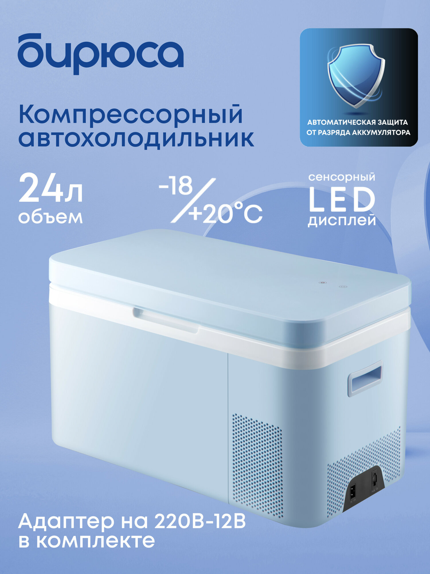 Холодильник автомобильный Бирюса НС-24P4 голубой информация: