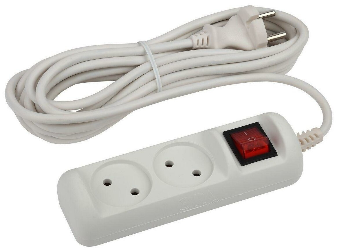 Отзывы на Удлинитель электрический ЭРА U-2s-5m-2x1 без заземления c выключателем 2 розетки 5м ПВС 2x1мм2 10А