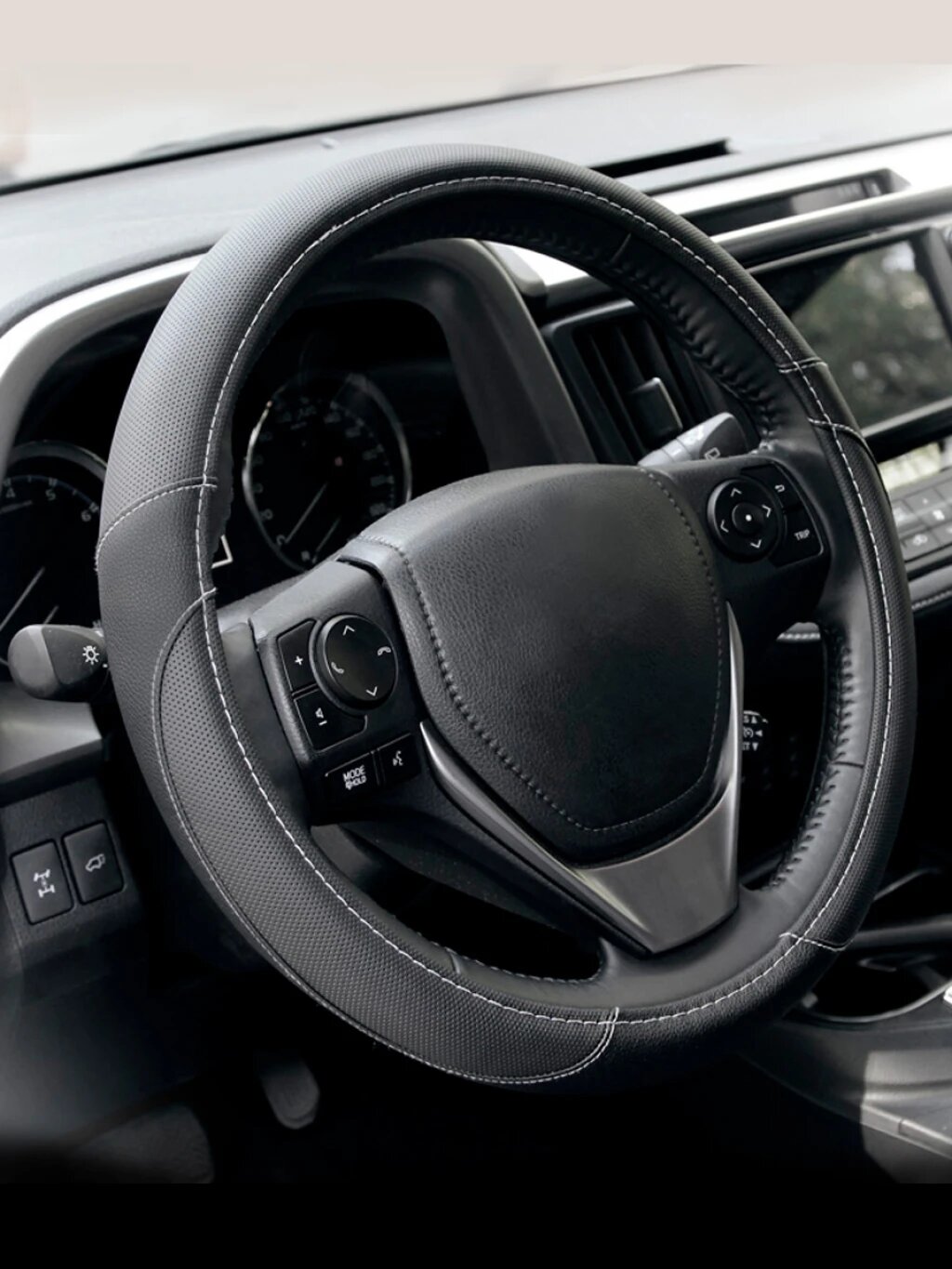 Оплетка на руль универсальная из экокожи «CARBON» М 37-39 см (чёрная, строчка чёрная) belais #21608
