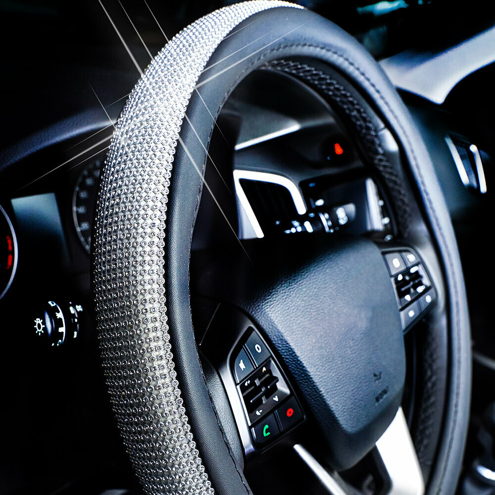 10 цен на Оплетка на руль кожаная со стразами, черная