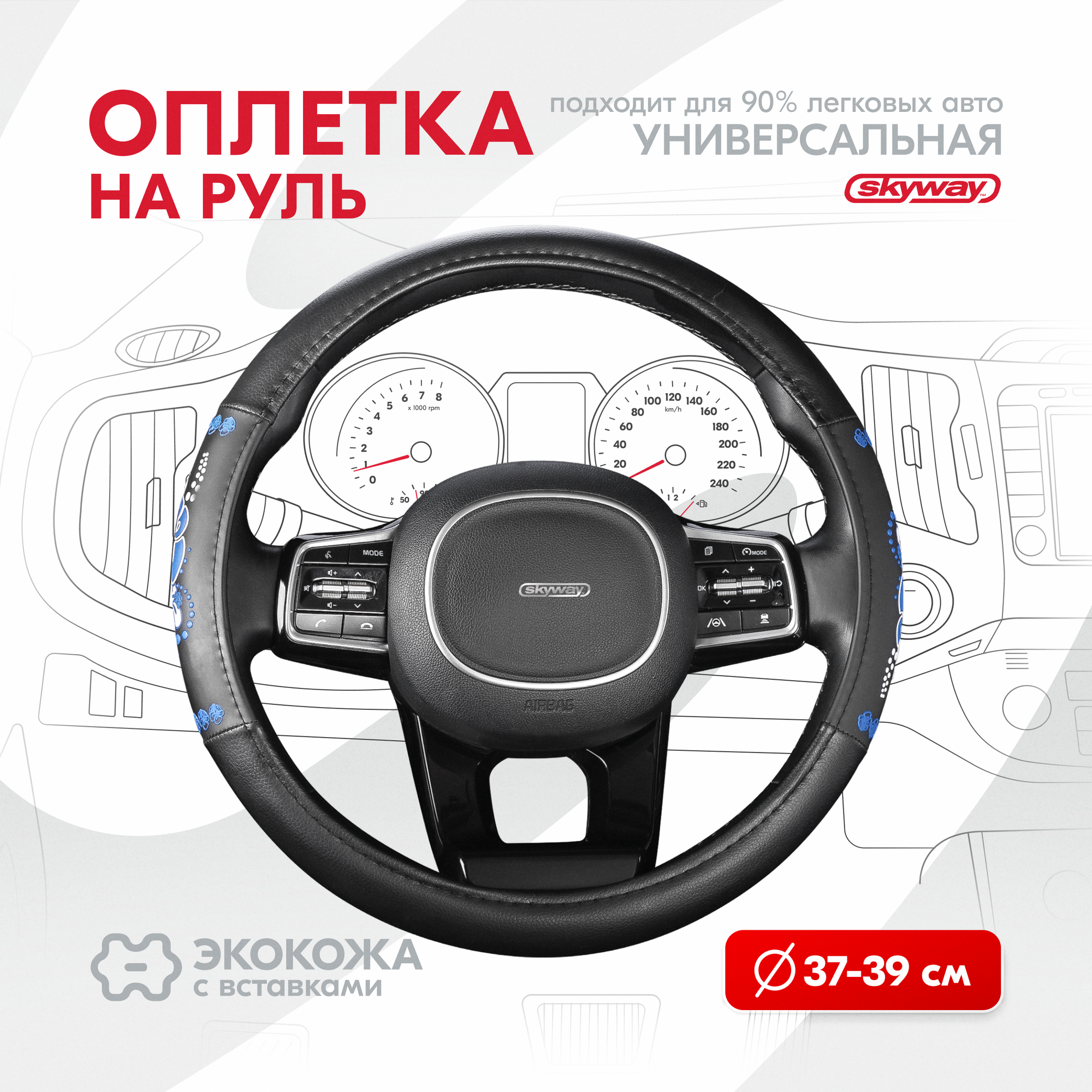Оплётка руля SKYWAY кожаная гладкая черная с 2 цвет. вставками "Синий цветок" ECO (М) 953 ₽