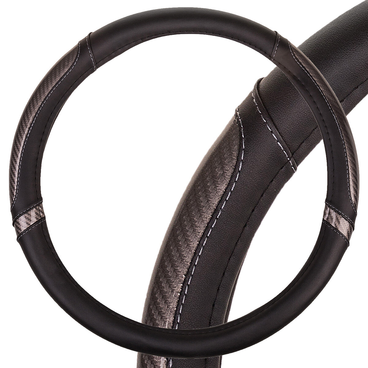 Оплетка на руль универсальная из экокожи «CARBON» М 37-39 см (чёрная, строчка чёрная) belais #21608