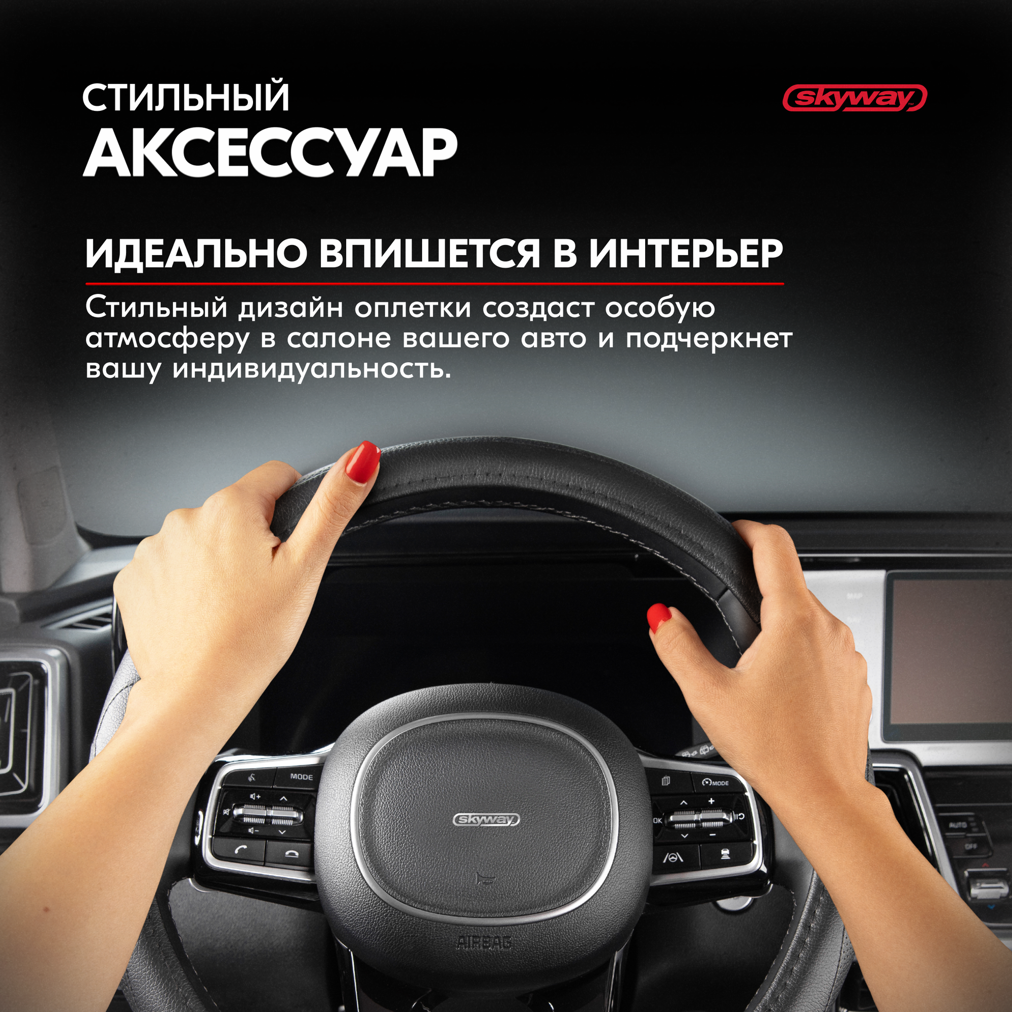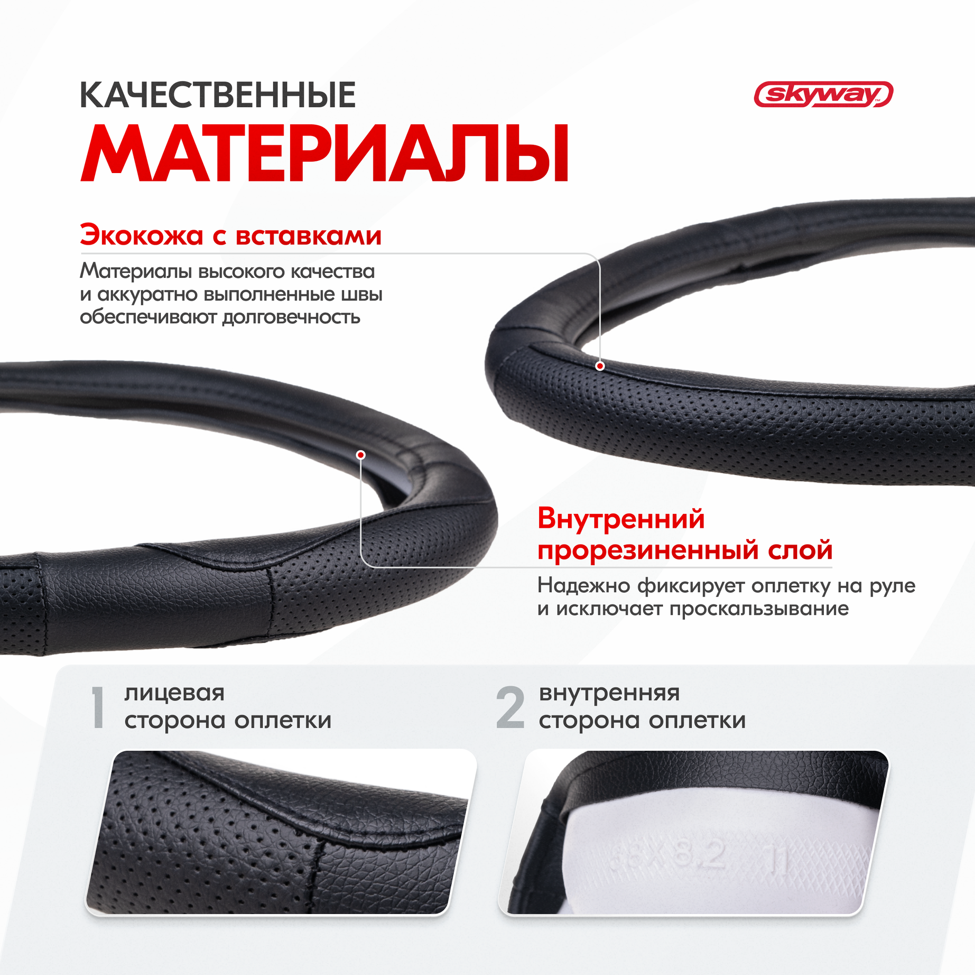 Оплётка руля Skyway Art-2 Эко кожа черный M 769 ₽