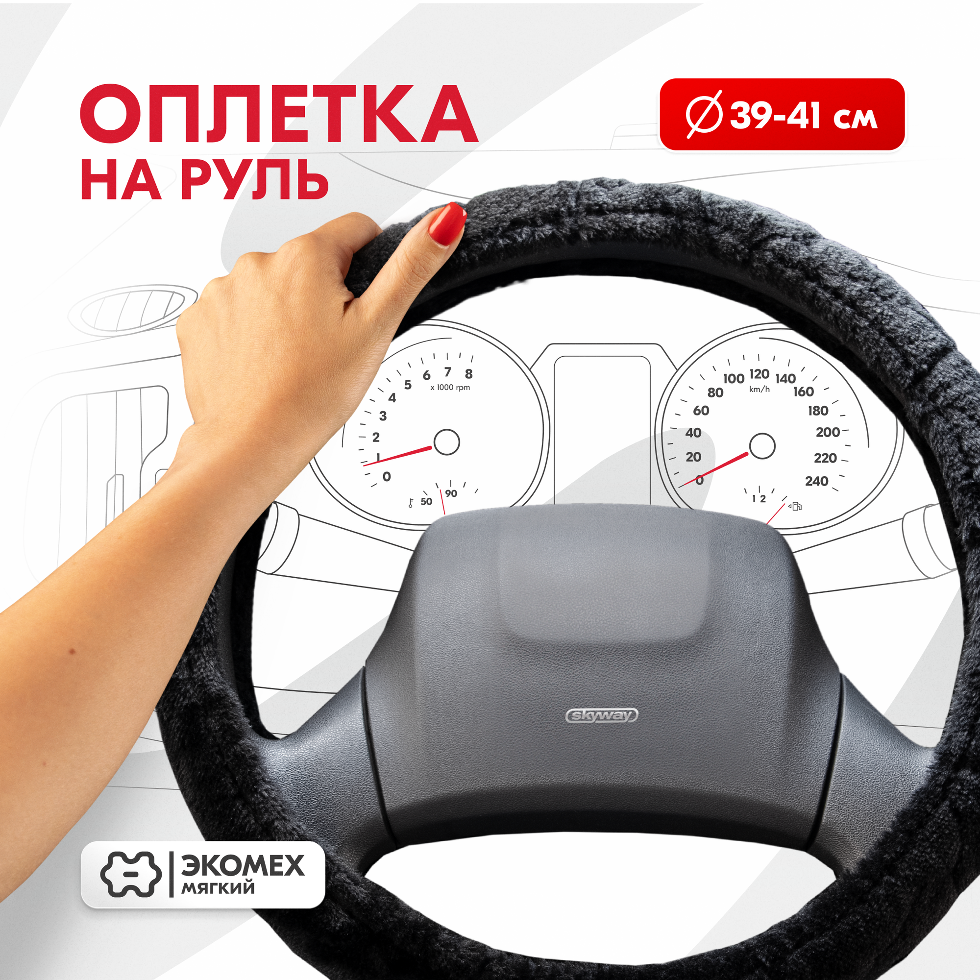 Оплётка руля SKYWAY меховая искуст черная ECO (L)