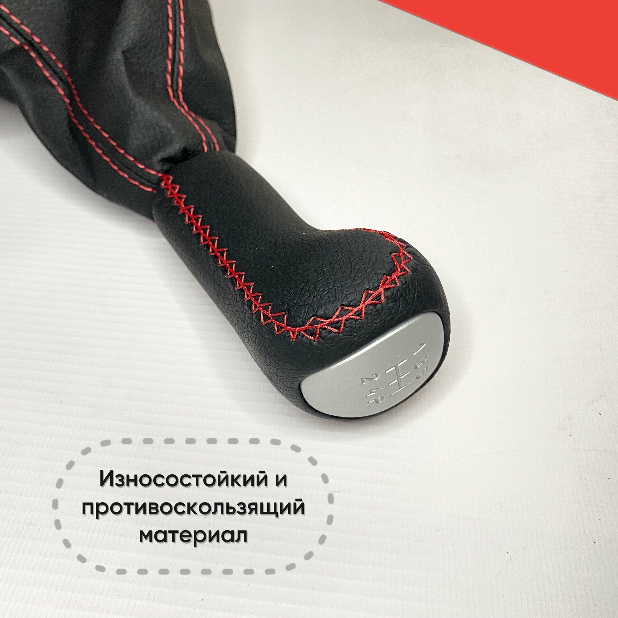 Ручка КПП экокожа Люкс на LADA Granta, Granta FL, Kalina 2, красная строчка /Ручка КПП Гранта, Калина 2 информация: