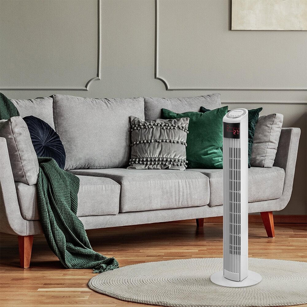Вентилятор MilWorks напольный с пультом управления, 3 режима скорости, 120см. 45 Вт. Цифровой дисплей. Мощный. Белый