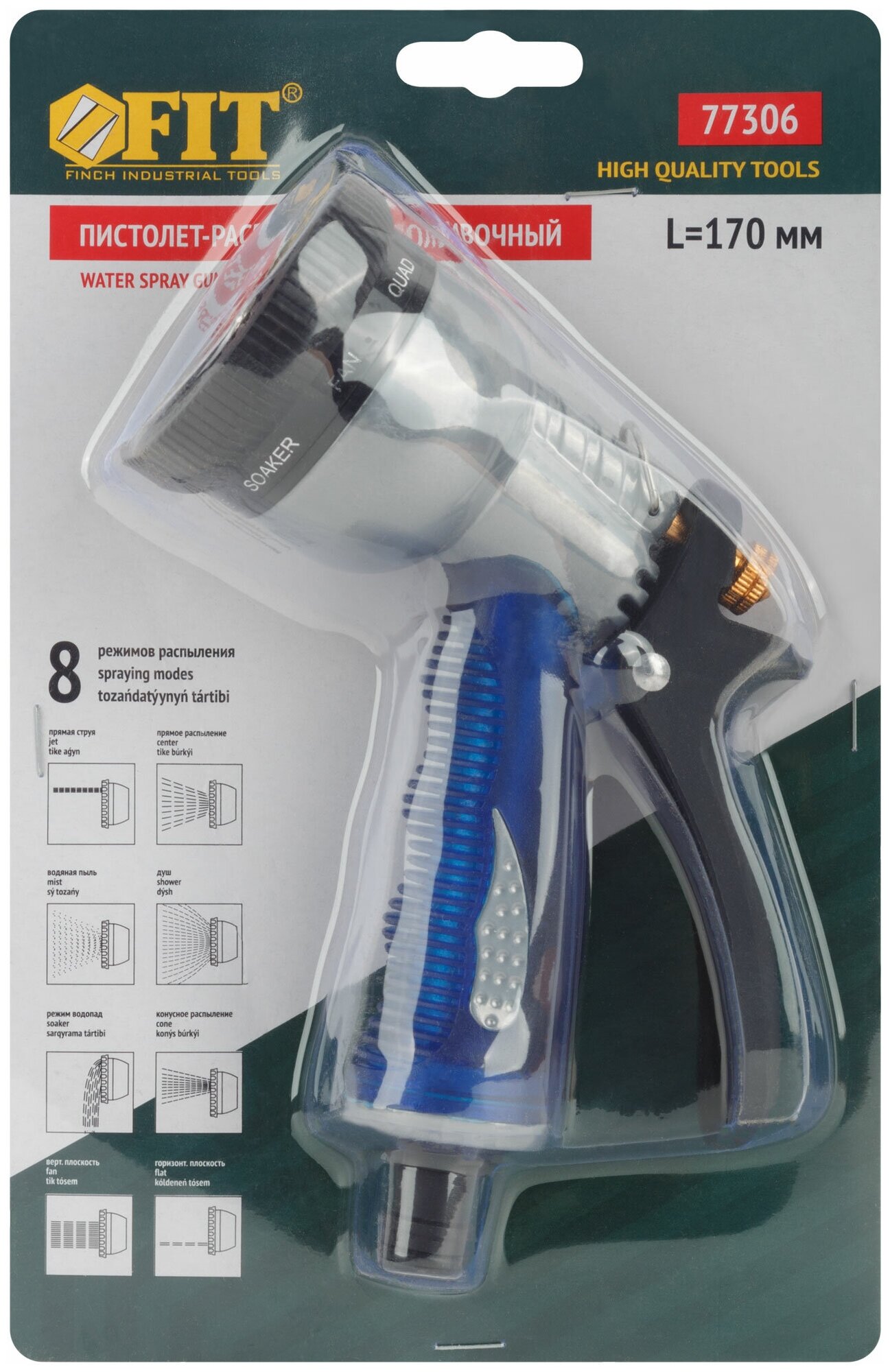 Пистолет для полива, 8 режимов, синий Профи 170 мм Fit информация: