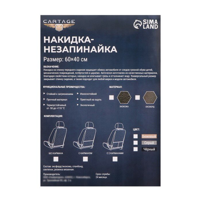 Отзывы на Накидка-незапинайка на спинку, 2 кармана ПВХ, оксфорд, ромб, серый, размер: 60х40 см