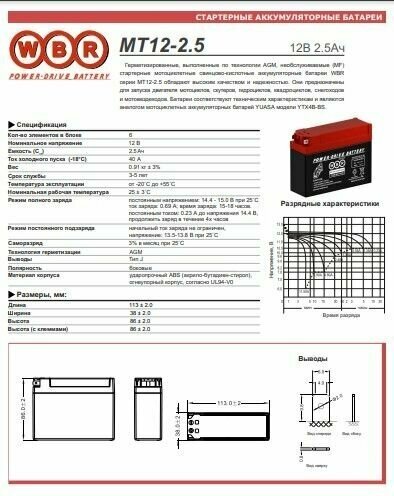| Маркировка мотоаккумулятора | YT4B-BS |