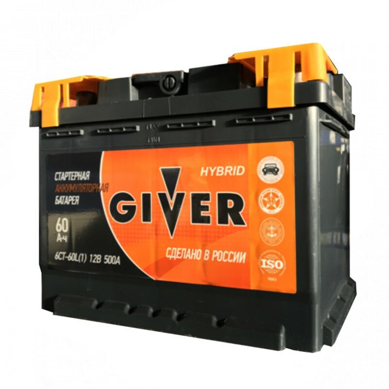 Автомобильный аккумулятор GIVER 60 Aч. 500А. Прямая полярность. информация: