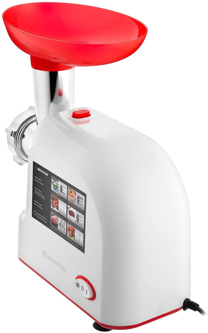 Мясорубка Brayer BR1603BK , 1500 Вт, реверс, насадки кеббе, колбасы, овощи, 2 диска, отсек для хранения