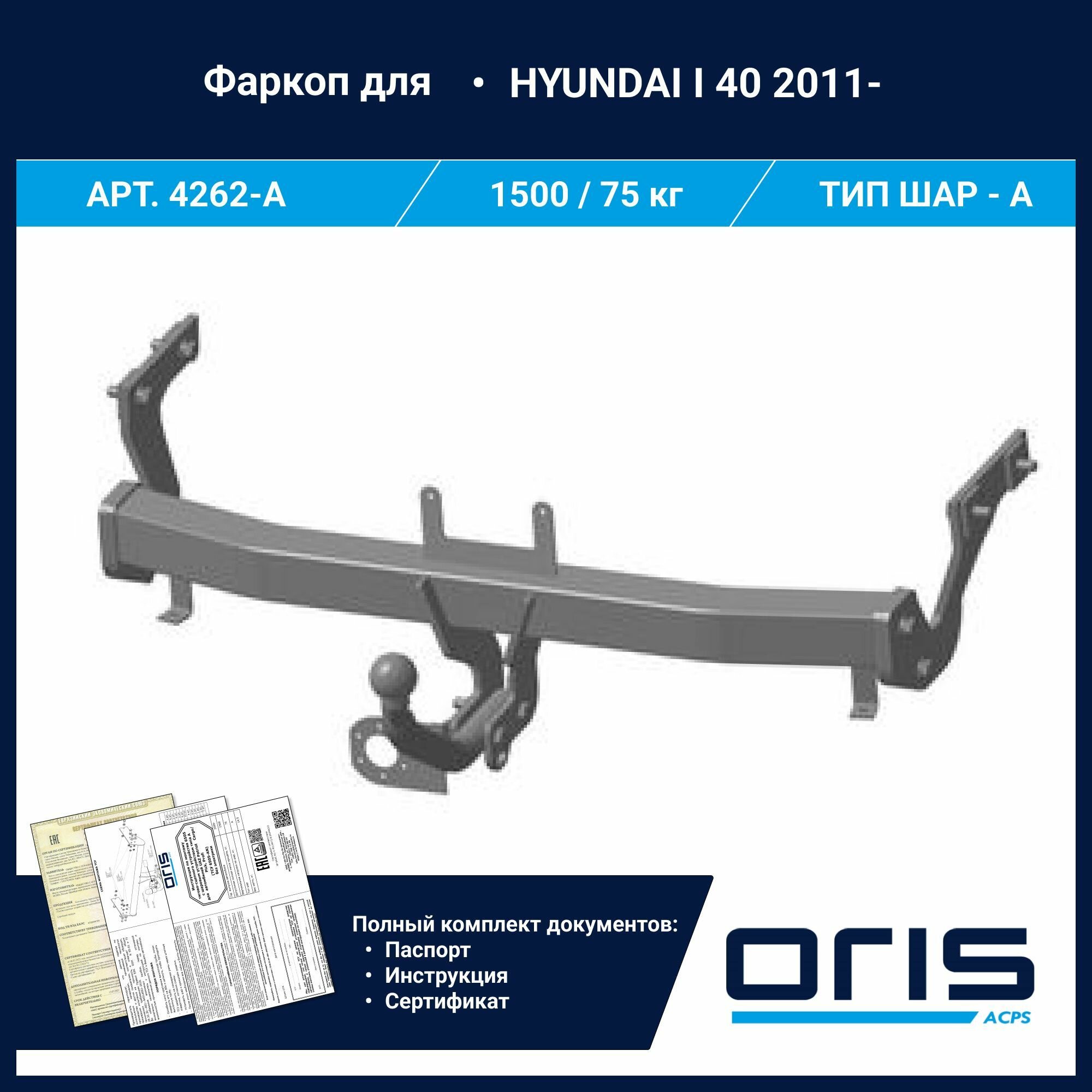 10 цен на Фаркоп Для Hyundai I40 Седан 2012- (1800/80) ORIS арт. 4262-A